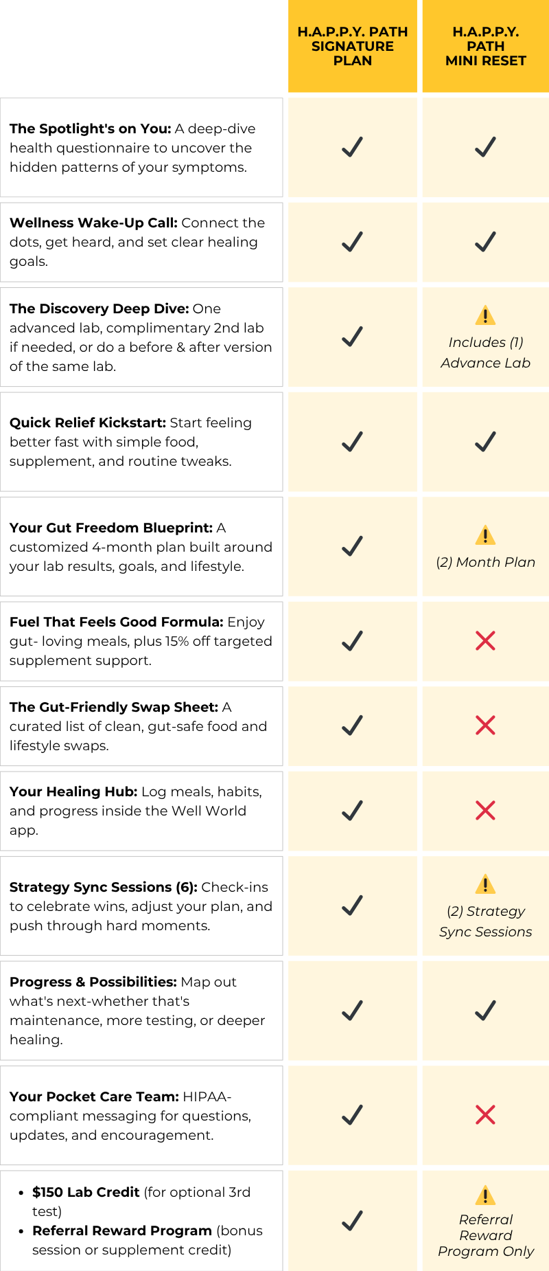 Ready to uncover what’s been holding you back? In this free call, we’ll explore your biggest health concerns and map out your next best step, no pressure, Our call is the Clarity Call.